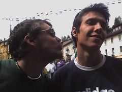 martedì 30 maggio 2006 - ore 12:48 LA MAMY ABBANDONATA SOS SALVATE LA MAMY ABBANDONATA cioè vi sembra una cosa normale...che le persone si dimentichino di te per seguire il primo punkbestia che passa per strada....insomma mi sento trascurata abbandonata ed esclusa... quindi ho deciso che farò approvare in parlamento la legge per cui i genitori possono scegliersi i figli che vogliono...e quindi fanculo PAPEZ ti disconosco...due abbandoni in due giorni sono troppi anche per il mio grande cuore di mamma...... LEGGI I COMMENTI (3) - PERMALINK lunedì 29 maggio 2006 - ore 20:41 CHE GIORNATINA ESILARANTE!!! CAP. 1: I CONTROLLORI comincia già dal treno.. quando saliamo ed enrico fa per cercare il capotreno per farsi obliterare il biglietto (perkè a ponte di brenta le macchinette o non funzionano o se le portano via!!!) passando davanti al controllore più giovane, inutile, indisponente e irriconoscibile del mondo che per vendicarsi di essere stato ignorato da tutti mi ha chiesto di mostrargli pure il documento!!! oggi praticamente c’era l’assalto dei controllori.. deve essergli giunta voce che nei treni ad alta frequentazione tutti si sono accorti ke nn ci sono mai e oggi si sono piazzati in massa!!! facevano tipo barriera in 3 per porta! ma nn li cagava nessuno!!! ahahah! (tra l’altro per cercare i posti a sedere passiamo per la porta adiacente dove ci sono altre due controlloresse che ci fanno "vi hanno già controllato il biglietto?" alchè volevo risponderle "ma nooo... siamo entrati per il finestrino noi!!!") CAP. 2:IL PUNK-SOSIA cmq in treno mando un mess alla Rò dicendole che ci troviamo alle dieci in stazione.. poi arriviamo ed enrico stranamente deve prelevare!!! ma finchè preleva vediamo il sosia di Pierxxx e lo inseguiamo!!! oh!!! ma era uguale!!! l’abbiamo anke fotografato!!! infatti dev’essersi sentito un attimo osservato... solo che camminava troppo veloce.. nn poteva essere lui!!! ahahah!!!CAP. 3: LA LEGGERISSIMA DIMENTICANZA arriviamo quasi in facoltà e... cazzo!!! la Rò in stazioneee!!! ahahah!!! era ancora lì che ci aspettava... così dopo averle scritto un bel mess "ehm... ci siamo dimenticati di te.." siamo andati a fare colazione!!! CAP. 4: LA SCARPA E IL CANE il resto della giornata passa tranquilla (c’erano pure le macchinette piene! scandalo!!!) finchè nn andiamo a prendere il treno per tornare a casa e... l’hanno soppressoooooo!!! noooo!!! da venezia a mestre! (le fs devono aver visto il sosia di pier...) quindi intanto andiamo a mestre ad aspettare il nostro trenino in ritardo di 35 minuti (che poi sono diventati 45!!!) quando ad un certo punto sentiamo un urlo disumano venire dal fondo delle scale che portano su al binario: praticamente una tipa salendo ha perso una scarpa e in contemporanea le sono caduti il sacchetto e il guinzaglio del cane.. che però ha continuato a salire le scale (ai 2 all’ora! niente di preoccupante! era pure nanerottolo!!!) allora io ho preso il guinzaglio e stavo "storcolando" le zampe del cane quando vedo la tipa che corre verso il treno noncurante del suo cane!!! allora la inseguo "signoraaa il caneee" e lei imperterrita continua a correre urlando dietro al treno che nel frattempo è partito lasciandola giù!!! ma per fortuna!!! sennò questa saliva lasciandomi lo sbavoso amichetto per sempre!!! ma ke culo!!! finalmente riesco a ridarglielo e questa in preda ad un raptus sale sul treno del binario di fronte... mah... chissà dove doveva andare in realtà!!! CAP. 5: BYE BYE P.D.B. e per finire in bellezza il macchinista si dimentica di fermarsi a ponte di brenta e ad un certo punto inchioda in mezzo ai binari e ci fanno scendere praticamente sui sassoloni a otto chilometri dalla stazione!!! ma daiii!!! E CMQ IO SONO EMILYYY!!! E SONO UN’ICONA!!! COMMENTA (0 commenti presenti) - PERMALINK lunedì 29 maggio 2006 - ore 20:15 A.A.A. CERC... NO.. OFFRESI PIER°°°!!! Ragazzo simpatico, carino, dolce, comprensivo (un po meno comprensibile)... PIER°°° è pronto a soddisfare ogni vostra fantasia... lui sì che è amico della patatina.. e della candela!!! amiche... per averlo (so che state fremendo!!!)... contattate lagenzia EMILY&CO... sul blog della Papez.. LEGGI I COMMENTI (2) - PERMALINK mercoledì 17 maggio 2006 - ore 20:20 SPEDIZIONE PUNITIVA PIER°°° ..quellaltro Pier.. ha osato insinuare di non essere mai stato menzionato nel mio blog e ciò mi ha fatta molto adirare, quindi urge vendetta... tremenda vendetta... TIE!!! LEGGI I COMMENTI (2) - PERMALINK mercoledì 17 maggio 2006 - ore 20:13 FACCE UNIVERSITARIE.. ...questo è il futuro dell’economia... a posto siamo!!! eheheh!!! il greco.. la mamy.. l’umorista il sosia che ha un sosia ed è sosia di un fratello che è a sua volta sosia di qualcun altro (dany) il perditore di portafogli il tecnologico (cinese) il giratore folle di pagine l’informatico e il candidatooo LEGGI I COMMENTI (6) - PERMALINK lunedì 15 maggio 2006 - ore 20:13 ![]() Evviva Evviva!!! sono riuscita a sopravvivere ad un’altra adunata degli alpiniii!!! VENERDì si parte venerdì pomeriggio... io & pieralpino! contrariamente a tutte le nostre previsioni arriviamo e canove senza fare coda.. giretto veloce per il paese.. primi bicchierini al banchetto di pierino poi casa a preparare armi, bagagli e stomachi alla serata!!! brillante idea: mangiamo una pasta bella abbondante così poi non ci pensiamo più... risultato: 3 etti di pasta con la panna, i funghi e la pancetta in due!!! più spensierati di così!!! quindi partiamo alla volta di asiago... a piedi!!! un sacco di gente... e ne abbiamo viste di cose strane quel venerdì... gente già finita ...vespe nei carrelli della spesa... ..il ponte di bassano in miniatura... figo!!! gente ke trasporta qualsiasi cosa con qualsiasi mezzo... ..gente allucinata... ..cartelli stradali alquanto discutibili... ..finchè tra una risata e l’altra, bicchierino qui e bicchierino là.. facciamo l’incontro-svolta della serata: i bresciani!!! ecco il 