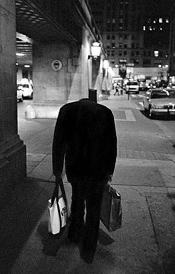 un uomo vuoto che sta attento a non inciampare e sbattere la testa vuota