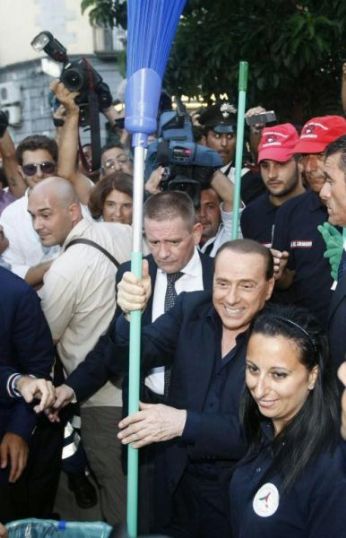 Cari amici di Spritz... è più forte di me... guardando ora su Repubblica.it vedo questa foto scattata oggi del Presidente Berlusconi con la ramazza in mano che pulisce le strade di Napoli... E non ce la faccio a non pensare a Mussolini che armato di forcone e braccia scolpite dava una mano nei campi a mietere il grano... Stessa identica italianissima cialtronaggine... Quando mai abbiamo visto Hitler intrattenersi in tali colossali prese per il culo ? Quando mai Stalin ha fatto finta di spazzare la piazza Rossa ? E questo un poco mi rassicura... per quanto teste di cazzo gli italiani sono e rimangono dei buffoni... meglio così... Io nonostante tutto sono felice di essere italiano... Viva lItalia....