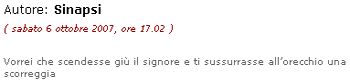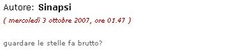 Per un istante ho persino sospettato che dietro a Sinapsi si nascondesse bod_man stesso, che, guarda caso, studia proprio a Bologna (luogo di residenza di Sinapsi)..