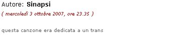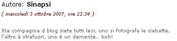 Dopo aver dato ai miei amici dei "patetici" nel mio post del 5 ottobre (commento immediatamente eliminato), si è diretto nel blog di bod_man, per lasciare questa dedica nel suo post del 5 ottobre: