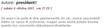 A quel punto decisi che, per farlo uscire allo scoperto, avrei potuto lanciargli qualche provocazione.. Provai a punzecchiarlo usando il post del 5 ottobre nel blog di bod_man: