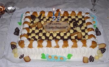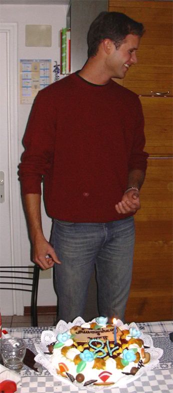 Qui sopra potete ammirare il festeggiato mentre esibisce compiaciuto uno dei regali ricevuti..