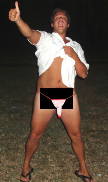 Il rettangolo nero serve a censurare tutto ciò che la ridotta dimensione del tanga a forma di tapiro lascia intravvedere, ma posso assicurarvi che lintimo indossato da Raiser è vero a tutti gli effetti! Non è un fotomontaggio!!