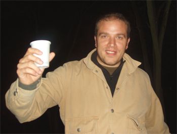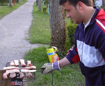 Nella foto, bod_man segue la cottura delle salsicce e delle costicine sistemate da Raiser sul barbecue. Ancora non può immaginare che la notte stessa vomiterà tutta la carne da lui cucinata sulle siepi che si scorgono alle sue spalle..