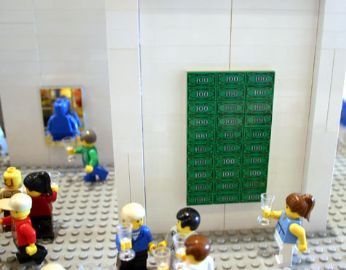 E le vetrine vestite di bicchieri e piatti di plastica gialli...