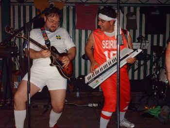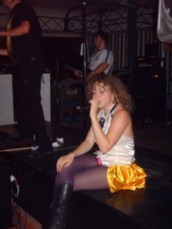 Semplicemente grandi i FREEWAY a Villa Barbieri per il Calippo Sprizzoso!  E una ci vuole per la Laura, che è stata divina come sempre.. si perchè dietro le quinte la stanchezza stava avendo il sopravvento su di lei, ma ha fermato in tempo il tempo, riprendendo la carica giusta e ha cantato e ballato come solo lei sa fare.. niente è semplicemente mitica!  Una diapositiva per lei in cui vediamo la passione che ci mette per cantare Kiss me licia! E il pubblico invece che fa a gara a chi fa meglio il giochino del Depo!  La foto decente di Loris la lascio mettere alla Sonika perchè a me non son riuscite granchè.. però son riuscita ad immortalare un momento "cattivo" di Fabio e Silvio e il grande impegno che Franz ci mette a suonare la batteria ! Ma abbiamo anche una foto molto carina della sottoscritta, col Druido, prima del concertoDesfo!