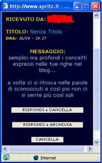 ![]() ------------------------------------------ --------------------------------------------------------- Opera che rinnego fermamente LINK--------------------------------------------------------- "1° BLOG-GEMELLAGGIO" LINK--------------------------------------------------------- "SPRITZ - BOYS 2004" LINK - LINK - LINK "L’ALTRA FACCIA DEI BOYS" LINK--------------------------------------------------------- "SPRITZ - GIRLS 2004" LINK "GLI OCCHI DELLE GIRLS" LINK--------------------------------------------------------- "SPRITZ - ANIMALS" LINK--------------------------------------------------------- "SPRITZ BOYS & GIRLS 2005" LINK "SPRITZ - BODY PUZZLE" LINK--------------------------------------------------------- "SPRITZ - BABIES" LINK--------------------------------------------------------- "TUTTE LE LINGUE DI SPRITZ 2006" LINK--------------------------------------------------------- SPRITZ COPPIE VIRTUALI LINK--------------------------------------------------------- "Cazzeggio ergo emoticon sum" LINK--------------------------------------------------------- quando Dio vuole punirci... realizza i nostri sogni... tutta la vita!