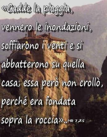 ’’ Come la casa fondata sulla roccia non crolla - così una vita costruita su GESÙ non crolla davanti ai problemi di questa vita! Chi vive con Gesù non ha paura del domani!’’