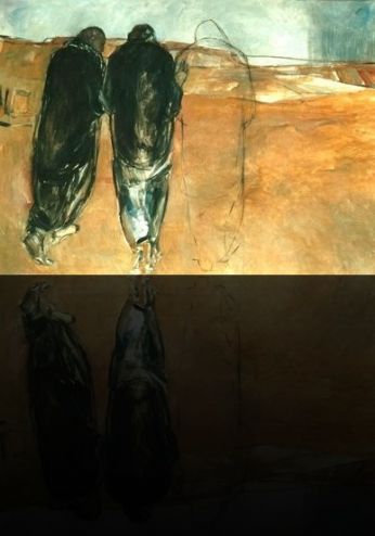 Due viandanti - Cleopa e un altro - riflettono mesti. Tema di drammatica attualità: la morte di Gesù di Nazareth. Si parla di ciò che sta a cuore. Sta a cuore ciò che si cerca. Si cerca ciò che si ama.