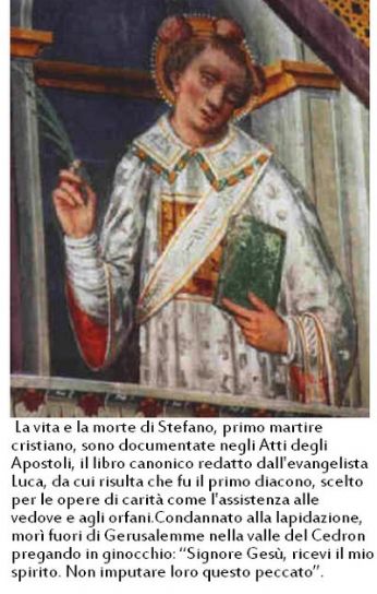 Santo Stefano, sia per essere stato il primo Martire di Cristo, sia per la grandezza della sua santità e sia per la sua prodigiosa attività taumaturgica, viene giustamente annoverato tra i Santi più popolari. E’ anche patrono dei Diaconi.