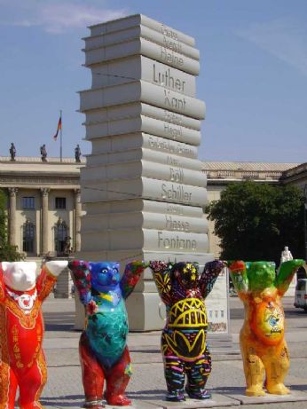 orsi che fanno il girotondo a Bebelplatz, dove si è compiuto uno dei più grandi scempi della storia, il rogo nazista dei libri.