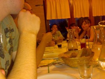 Ieri pomeriggio dopo aver dormito le ormai canoniche 6 ore bam apro gli occhi e mi viene 1 certo languorino, per forza era appena passato mio padre con le costesine ai ferri davanti a camara!!!!! ok quindi in piedi pranzo,penichella mezzora,doccia MotoGP indi si parte... esco e ci troviamo al bar con la company direction ISOLA MANTEGNA infatti ieri abbiamo iniziato il torneo di calcetto con 1 buona partita risultato 5-5 e soprattutto partita emozionante dal punto di vista del ritmo!!!!alla fine spompati birra e spritz!!!!!! La sera abbiam pensato bene di cenare da Fasan.... come al solito io faccio le foto e gli altri MAGNANNO!!!! poi con il rialzo del tasso.... il tasso del rosso siam giunti a far el macello de risate a dx e sx e a studiare le nuove tattiche di giuco per il calcetto nel posto dove tutti esprimono concentrazione