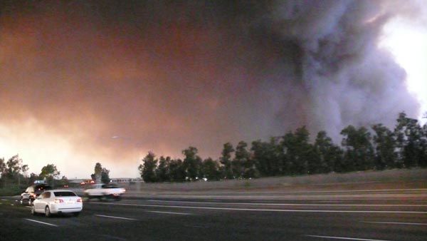 Anche in italia si parla di incendi in california.. beh, garantisco: è impressionante. Laltro giorno ero in messico a Tijuana (subito sotto San Diego) e cera talmente tanto fumo che laria era irrespirabile. In autostrada da San Diego a Los Angeles altri 4 incendi visti... hanno addirittura chiusa la highway 5... oggi sopra gli universal studios di hollywood cera una nuvola di fumo davvero impressionante.... la colpa è del vento di santa ana. 30 gradi di giorno, vento forte e umidità tra il 5 ed il 10%.