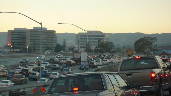 assaggio del traffico intorno a downtown verso sera...