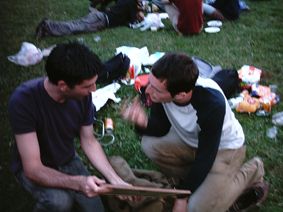 Tanti cani ( con le mani , citazione Northpole) a Sherwood, a fare colore e pure casino. Cani che passano e che con nonchalance ti rubano le infradito e se ne scappano via. Bello scoprire di avere amici esileranti che riescono a farti piegare dal ridere per le proprie disgrazie. Digerita la settimana cestistica Sherwood diventa per il primo anno appuntamento fisso serale e più ci si va, più creano assuefazione e dipendenza, oramai abbiamo assaporato tutte le varie delizie culinarie, guardato partite, chiaccherato a lungo, bevuto come squali, oltre naturalmente all’infinito chill out della magica collina. E dulcis in fundo, sabato scorso abbiamo pure sparso note piacevoli qua e la, in un potentissmo dj set a 8 mani, dove c’è stato uno dei dancefloor più belli dell’ultima stagione. Esperienza da ripetere. Fine giugno è sempre sentimentalmente deflagrante, due anni orsono di questi tempi tornavo sconvolto dal mio erasmus (lo so, sono ripetitivo). Fa strano pensare che domani qualcuno torna a casa (proprio il 30 giugno) dal proprio erasmus francese… per non parlare di sabato mattina, quando il mio cuginetto (l’altra metà di SoundPark) tornerà più sconvolto di quanto lo ero io, dopo 9 mesi di spassosa vita parigina. Speriamo la Notte Bianca riesca a consolarlo un pochino, altrimenti abbonderemo con alcool ed affini. E come non bastasse ieri Sherwood si trasforma in una piccola Francia (a proposito, chapeau per Zizou) con i Louise Attaque in concerto.