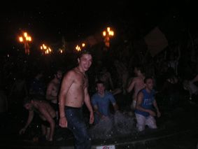 Il resto è irrealtà. Abbracci ed urla, lacrime e vino che scende copioso, canti improbabili, inno d’Italia in loop. Avevamo un appuntamento con la storia e ce la stiamo portando in giro a braccetto con stile impeccabile. Ci si rotola sulla magica collina di Sherwood, si fa il pieno di bottiglie e si parte. Prato della Valle raggiunto tra il delirio, fattosi via via più concreto. Abbracciamo gli altri amici, siamo tutti ebbri, di gioia e di alcol, in quantità sparse ed indefinite. Non potevo non farmi un giretto dentro la fontana, affido i miei tesori allo zaino di Alessia e vado ad abbracciare un po’ di gente dentro l’acqua. Tutto bello, quasi perfetto. Arriva anche mio fratello, per gli ultimi spiccioli di gioia da buttare fuori. Quasi non ce ne accorgiamo ma si è fatto tardi e dietro di noi avevamo già una discreta quantità di ore adrenalinche. Si prova a dormire ma sembra un’impresa, stamattina occhi che non si aprono e testa che gira ancora un pochino… ma mai risveglio fu più dolce. Resta qualcosa di indelebile.