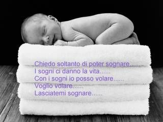 Le frasi ke mi fanno sognare...! -"Perchè la vita è un brivido k vola via" -"Riconoscere la vita in ogni respiro" -"your eyes are the mirror of your soul" -"chiudi gli occhi e inizia a sognare" -"non importa quanto aspetti...l’importante è chi aspetti" -"Nn permettere mai a nessuno di dirti k nn sai fare qualcosa. Se hai un sogno dv proteggerlo. Se vuoi qualcosa, vai e inseguila." -"So che ogni passo che ho fatto da quando ho imparato a camminare, era un passo verso di te!" -"Ho attraversato gli oceani del tempo per trovarti" -"se hai bisogno e non mi trovi cercami in un sogno" -"Vivere...6lettere...numerosi istanti...migliaia di emozioni" -"Voglio un mondo all’altezza dei sogni ke ho" -"Il bacio è un dolce trovarsi dopo essersi a lungo cercati" -"Chiunque abbia amato porta una cicatrice" -"Siamo fatti della stessa sostanza dei sogni" -"Una notte d’amore è un libro letto in meno" -"La cosa più difficile del mondo è viverci... abbi coraggio vivi" -"La mia mente è un ritratto di te" -"Ogni attimo della mia vita, nei tuoi occhi diventa prezioso" -"L’amore si completa quando due anime si uniscono in un solo respiro" -"Mi mancheresti anche se non ti conoscessi" -"Mi amerai x tutta la vita? No x l’eternità" -"è con te che ho imparato la bellezza della parola amore" -"il nostro amore immenso,da fuori sembrerà normale ma solo perché non lo puoi spiegare" -"Amare significa pensare intensamente a qualcuno,dimenticando noi stessi" -"Ama...Ama follemente...Ama più che puoi...E se ti dicono che è peccato, ama il tuo peccato e sarai innocente" -"Il bacio è la chiave dei ricordi" -"Un bacio non è niente...è la persona che lo rende speciale" -"Stavo x andarmene...ma poi ho capito che: preferisco litigare tutta la vita con te ke fare l’amore con qualcun’altro" -"Non stai vivendo se non sai di vivere..." -"Respirando te, ho respirato la vita" -"Speravo esistessi.....però nn immaginavo così tanto!!" -"sto pensando a te.. mentre cammino, mentre parlo, mentre rido, mentre respiro sto pensando a te mentre mi spoglio di ogni orgoglio quando guardo il mio destino sto pensando a te mentre ricordo quando ancora sento il tuo profumo" -"Non sono più lei....li messa in cornice....immobile,infelice" -"L’unico modo per liberarsi di una tentazione...è concedersi ad essa!!" -"Leggiti le avvertenze...non sono più lei...ho altre esigenze in cui non ci sei!!" -"Casomai lo sbaglio, non averti incontrato tempo fa" -"In qualunque posto sarai, in qualunque posto sarò....tra le cose che vivi io per sempre vivrò!! -"Se mi cerchi nel cuore, io nel tuo cuore vivrò!!" -" Tu sei il senso che ho di me" -" Per una magia così...vale la pena vivere" -" Volevo assaggiare tutti i sapori del mondo sulle sue labbra." -"È bello avere una persona sulla quale fare fantasie durante il giorno." -"Scusa il ritardo...c’ho messo tutta la vita x arrivare da te!" -"Gli incontri piu importanti sono già combinati dalle anime prima ancora che i corpi si vedano." -"Nella vita ci sono cose per le quali vale la pena di lottare fino in fondo. Tu ne vali la pena" -"chi ti ha fatto gli occhi e quelle gambe, ci sapeva fare....chi ti ha dato tutta la dolcezza ti voleva bene" -"vivere una notte lunga una vita, avere il suo profumo ancora tra le dita....svegliarsi affamati e rifarlo x ore passare dal sesso a fare l’amore..." -"lui è un’albachiara e tu sei gia troppo grande...ma io continuo a parlare di te...chissà poi perchè.." -"voglio addosso le tue mani, voglio vivere a colori...." -"ogni volta che cammino...e mi sembra d’averti vicino" -"dicono che si può rinascere, facile dirlo x chi non ha incontrato la tua pelle" -"perchè tu sarai sempre il mio solo destino...posso soltanto amarti, senza mai nessun freno!" -"Portami altrove, portami dove non c’è nessuno che sappia di noi, fammi vedere come si muore senza nessuno che viva di noi" -"tu sei quel respiro che mi toglie ancora il fiato..." -"è un giorno bellissimo...comincia da un battito, le ciglia si aprono e davanti agi occhi questo spettacolo è solo da vivere, da vivere io e te" -"Ho fatto un patto sai... ....con le mie emozioni, le lascio libere... e loro non mi fanno fuori" -"Ci sono persone che non finiranno mai di volersi bene...semplicemente perché ciò che li lega è più forte di ciò che li separa" -"Può il destino unire ciò che due persone tentano di dividere?" -"Tenta perché se non hai mai tentato non hai mai vissuto" -"Solo l’amore può lasciare un segno così forte, ma solo l’amore può guarire una cicatrice così grande" -"Ti guarderei un milione di volte, senza mai impararti a memoria" -"Sei tu l’unica cosa dolce che ho tra le labbra" -"Quando ti vidi mi innamorai e tu sorridevi perchè lo sapevi." -"Quando stai con qualcuno, non puoi chiedergli garanzie, perché non puoi chiederle neanche a te stesso. L’amore è un rischio che una persona si assume. Per questo il vero amore è per i coraggiosi." -"ho cercato la bellezza e l’ho trovata infondo alla semplicità" -"il per sempre è una fiaba che noi già stiamo scrivendo" -"Non avevo mai capito perchè ad una persona ne servisse un’altra per sentirsi completa....non l’avevo capito fino a quando non ho incontrato te" -"La vita non è una commedia che puoi provarla prima. Devi vivere improvvisando(V.Rossi)" -"Il mondo non c’è stato dato in eredità dai nostri padri ma in prestito dai nostri figli" -"che rumore fa la felicità? ora l’ho capito il suoni dei tuoi baci" -"Chiudi gli occhi e fai finta che sia un brutto sogno. E’ così che vado avanti."