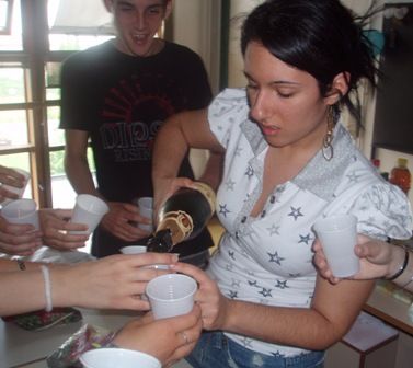 La Ely che versa lo spumante