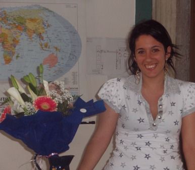 La Ely con i fiori che le sono arrivati in classe!