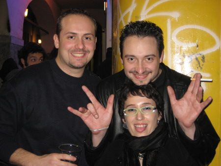 Venerdì sera da Frenki’s c’è stato uno scambio culturale fra gli avventori abituali ed un folto gruppo di studenti/lavoratori inglesi e spagnoli... loro sono in Italia, in teoria, per imparare la lingua, ma, alla fine, per comunicare, si è sempre parlato in inglese (sfruttando la proprietà lessicale della polpetta e di Gianmarco, che si sono prestati a fare da vocabolario vivente ed interattivo)! Serata estremamente originale e divertente, all’insegna dello spritz e delle polpette di Ale... una ragazza, Amy (tipicamente sassone, con corti capelli rossi, lentiggini ed occhi verdi) ha detto ad un suo amico che sono pazza (She’s crazy)... che fosse per la nuova mini goth inglese con pizzo e raso, le calze rosse ed i cornetti contro il malocchio alle orecchie? Boh...