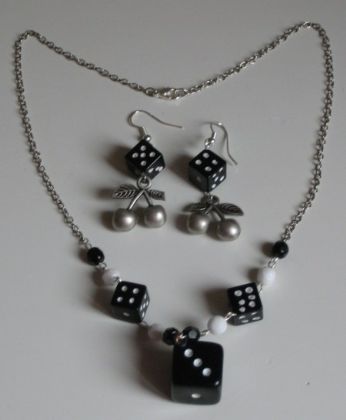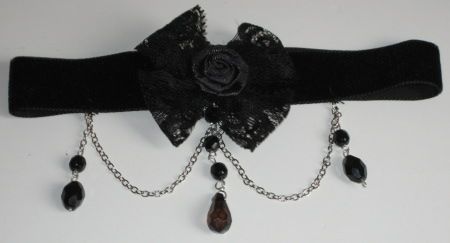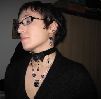 Praticamente ha sempre piovuto da venerdì sera fino a questa mattina (tanto che ad un certo punto stavo seriamente considerando di usare uno scafandro per poter uscire)... unica parentesi nel diluvio, il pomeriggio di sabato: mi sono fiondata in centro e ne sono tornata con la tanto desiderata cintura con le borchie e con una borsa viola in camoscio... arrivata a casa oggi, ho poi avuto una gradita sorpresa: le poste mi ha consegnato i miei tanto agognati chockers gotici e la mia parure con dadi e ciliegie...