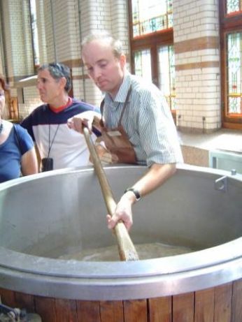 luomo che produce la birra...