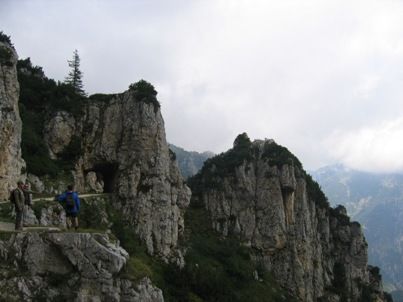 Il Monte Pasubio è un imponente massiccio delle Prealpi Vicentine famoso per la vicende belliche della Prima Guerra Mondiale. noi abbiamo percorso la "famosissima" ( a quanto pare )STRADA DELLE 52 GALLERIE, considerata un capolavoro dell’ingegneria militare. Venne costruita dal genio militare italiano nel corso della prima guerra mondiale, subito dopo la Strafexpedition austriaca del 1916, per l’approvvigionamento delle truppe impegnate sulla sommità del Pasubio nel contrastare l’esercito austroungarico. La Strada delle Gallerie sale, tagliando la verticale parete meridionale del Pasubio, dai 1200 m di Bocchetta Campiglia ai 2000 m del rifugio A. Papa, alle Porte del Pasubio. Comodo itinerario senza difficoltà alpinistiche ( Comodo ?!?!?!?! Ho rischiato la morte!! ) , è una panoramica escursione, abbastanza lunga e caratterizzata dal susseguirsi delle gallerie, alcune delle quali superano il centinaio di metri di lunghezza.