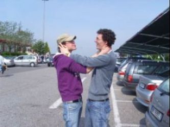 mercoledì 30 aprile 2008 - ore 17:08 In pausa pranzo... Elena:" E vero,in Friuli bestemmiano anche i cani..." Guizzo: "Si... e dicono DIO UOMO!" - PERMALINK mercoledì 30 aprile 2008 - ore 15:45 Pensieri in fila...io e il QITANIC! Ecco... lo scatto di gelosia mi è passato, ecco ieri cos’è successo... zampettando di qua e di la tra i blog a un certo punto mi si illumina una lampadina in testa.... ta daaaan!! Ecco il susseguirsi di illuminazioni... Leggo “VOLTARONCAGLIA-BRONZOLA” Mi viane in mente che se a Bronzola di cui tra parentesi ignoravo l’esistenza, aggiungo una S viene fuori SBRONZOLA (mi seguite...?) Se penso a Sbronzola mi viene in mente il luogo in cui ha detto di vivere qualcuno dal blog nero Qualcuno dal Blog nero mi fa venire in mente LA TIPA DAL BLOG NERO! LA TIPA DAL BLOG NERO è quella che scrive a colui che mi fa ingelosire... Colui che mi fa ingelosire è quello che ha giocato contro la squadra del BRONZOLA!!!! Quindi.... O questi due han colto l’occasione e si son visti domenica scorsa oppure io sono completamente fusa al cervello, il che è probabile... forse molto più probabile della prima opzione!Il punto è che ho potuto dare sfogo alle mie paranoiche intuizioni a lavoro.... Sarà la musica del titanic mentre affonda messa a manetta dai miei colleghi e che non è altro se non la metafora di quello che ci sta capitando, che stimola questi miei pensieri... penso, penso, penso...PENSO TROPPO! Ma forse è un caratteristica tipica delle donne.. di alcune però..questo maledetto divagare...E se invece avessi ragione?! Ultimamente mi stanno capitando tante di quelle coincidenze... Tipo.... nominare per caso al mattino una persona che non vedi da mesi, poi tornare a casa e, appena scesa dalla macchina, beccarla in quel momento mentre esce dal campo sportivo di fronte a casa tua..Strana cosa il fato... Oppure...dopo il lavoro fermarsi in cimitero e incontrare casualmente sia mamma che sorella...che tra l’altro erano andate li in motorino... (quante probabilità ci sono???)..Che mia sorella esca in motorino è praticamente impossibile.. Figuriamoci trovarle proprio in quel luogo... ci sono dei momenti in cui una persona vuole rimanere sola con se stessa... A volte sono così anch’io... Ma poi passa... e ritorno una pestifera gelosa!!e.. golosa... Sono stata definita dai miei amici CALMA APPARENTE... niente di più azzeccato... - PERMALINK martedì 29 aprile 2008 - ore 17:46 Allora devo proprio incazzarmi... Spaccare la faccia a qualcuno!! Che nervoso... sono sempre la solita!! E io che volevo scrivere un post sulla mia recente scoperta di aver imparato a dare il giusto peso alle cose... E invece no! Ho i nervi a fior di pelle per una cazzata,uffi.... ma è possibile essere così gelosi?! - PERMALINK martedì 29 aprile 2008 - ore 11:29 nOvItA’ ![]() - PERMALINK lunedì 28 aprile 2008 - ore 10:51 FULL DAYS Che figata Cesenatico quest’anno... è quello in cui mi sono divertita di più in assoluto!Peccato solo perchè doveva essere un ritiro per giocare a tennis... ma la racchetta l’ho vista ben poco! Troppa gente e troppo pochi campi... e pure sconquassati e a zolle!! Ecco i momenti che, per un motivo o per un altro vale la pena ricordare... Le tre soste all’andata...neanche i 70enni si fermano così spesso in un viaggio di tre ore Le innumerevoli partite a beach in cui si scommetteva una doppia porzione di macedonia dell’hotel Io che sono impedita a giocarci e sono più sulla sabbia che altro, La litigata portata all’esagerazione (e all’esasperazione..)tra me e l’eli VS figlia dell’allenatrice Teo che suona la chitarra in camera Io che faccio un parcheggio perfetto dietro l’altro (e non è da me...), però anche grazie alle preziose indicazioni di Ricky, Gli spagnoli Maria e Havier, madonna ma quanto grosso è Havier!! E’ enorme!! La partita del primo giorno: io e marco VS eli e tex...e abbiamo perso 5 a 6... Tutte le bimbe che fanno la gara per accaparrarsi teo Marco, eli, teo che si perdono al ritorno dai campi da tennis e non riescono a trovare l’hotel La faccia di Ricky appena bevuto il terzo rum e pera Marco che spende 13 Euro per carcare di prendere un peluche dalla macchinetta della sala giochi e, mentre va a farsi combiare ancora soldi, Teo mette dentro 50 cent e al primo colpo glielo frega!! Teo e marco si prendono un kebab super pesante alle 2 di notte, Le teorie di Ricky sull’andare sempre dritto che prima o poi da qualche parte si arriva Ale che dopo aver passato mesi ad organizzare Cesenatico, si ammala Teo che russa fortissimo e rende impossibile il sonno di tutti quanti Io che mi sveglio la mattina con un crampo al polpaccio e tutti pensano che stia solo sognando Tex che si mangia vagonate di ciuccetti anche prima dei pasti La partita del secondo giorno: io e teo VS eli e marco...e finalmente vinciamo 7 a 5!! Il banco dell’inquisizione durante il dopo-pranzo davanti alla faccia impietrita di Ale La camminata lungo la spiaggia con zaini e zainetti per trovare un posto libero in cui poter giocare Jenni di Gennaro che salta dappertutto per prendere la palla I ragazzi che vanno a giocare a calcietto mentre io e l’eli torniamo in Hotel a sistemarci per la serata... Marco: man of the match! Il regalo di compleanno azzeccato che abbiamo fatto a Teo Io e l’eli che balliamo sul cubo fino alle 3 e mezza di notte in disco a Cervia, teo che ci prova con tre tipe... ma va in bianco! Claudio e tex che, inaspettatatamente, si scatenano e si divertono in disco Marco e teo che prendono una piada con tutto dentro alle 4 del mattino, Claudio, Ricky, Tex e Teo che dormono tutti ciucciati nello stesso letto matrimoniale ...e neanche fossero ragazzi piccoli... tutt’altro! Io che durante la notte inciampo su una borsa e faccio casino Noi tutti che alle nove del mattino scporiamo che bisognava lasciare libere le stanze entro le otto, Il gavettone che faccio a Tex La piada favolosa che abbiamo mangiato a pranzo, La strada in mezzo ai c