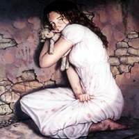 Piccola, rannicchiata in un angolino, sola e spaventata.