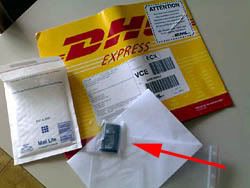 DHL, tutta scritta in tedesco, che conteneva: una busta imbottita pre-affrancata per rispedire la batteria difettosa, una lettera di ringraziamento e ovviamente la batteria nuova.