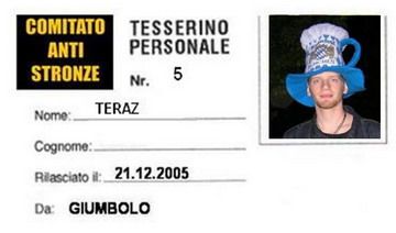 Anzi, dovrei avere la tessera n.ro "00"...come la farina...come i cessi...