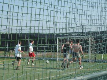 Ieri pomeriggio partita di calcetto (vista da spettatrice ovviamente.. Ci giocavo da piccola con mio cugino, ma son passati 20anni!) Si ho fatto qualche foto perchè questi baldi giovani erano da immortalare, ma qualcuno mi ha detto "sempre co’ quea machineta in man.." e io.. beh ma senza di me col cavolo che avreste le vostre foto e i cd.... I giocatori: Paolo, Livio, Centipede, Leonida, Jashugan, Nickyts, Fabio, Void, Stefano, Michele. Tutti bravi direi!  La sera cena a casa di Paola e tanti complimenti alla padrona di casa perchè è stata proprio una bella serata. Tanti i presenti..
